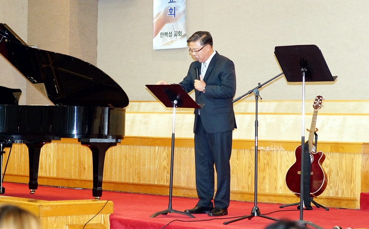 뉴욕만백성교회 총남선교회장 조완호 권사의 개회선언